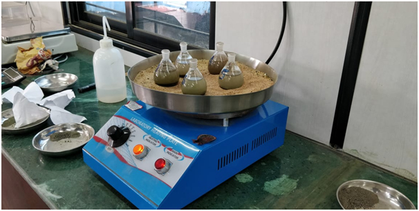 Sieve Analysis:A sieve analysis (or gradation test) is a practice or procedure used to assess the particle size distribution (also called gradation) of a granular material by allowing the material to pass through a series of sieves of progressively smaller mesh size and weighing the amount of material that is stopped by each sieve as a fraction of the whole mass.